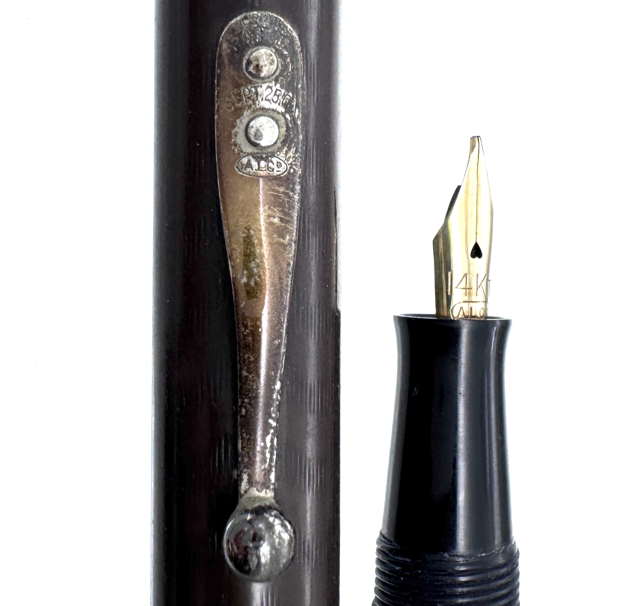 The 14K Medium ALCO (Aikin Lambert Co) nib is of later vintage and offers appropriate feedback and writes well. This pen is from the personal collection of PacificPenWorks nib specialist John Mottishaw.