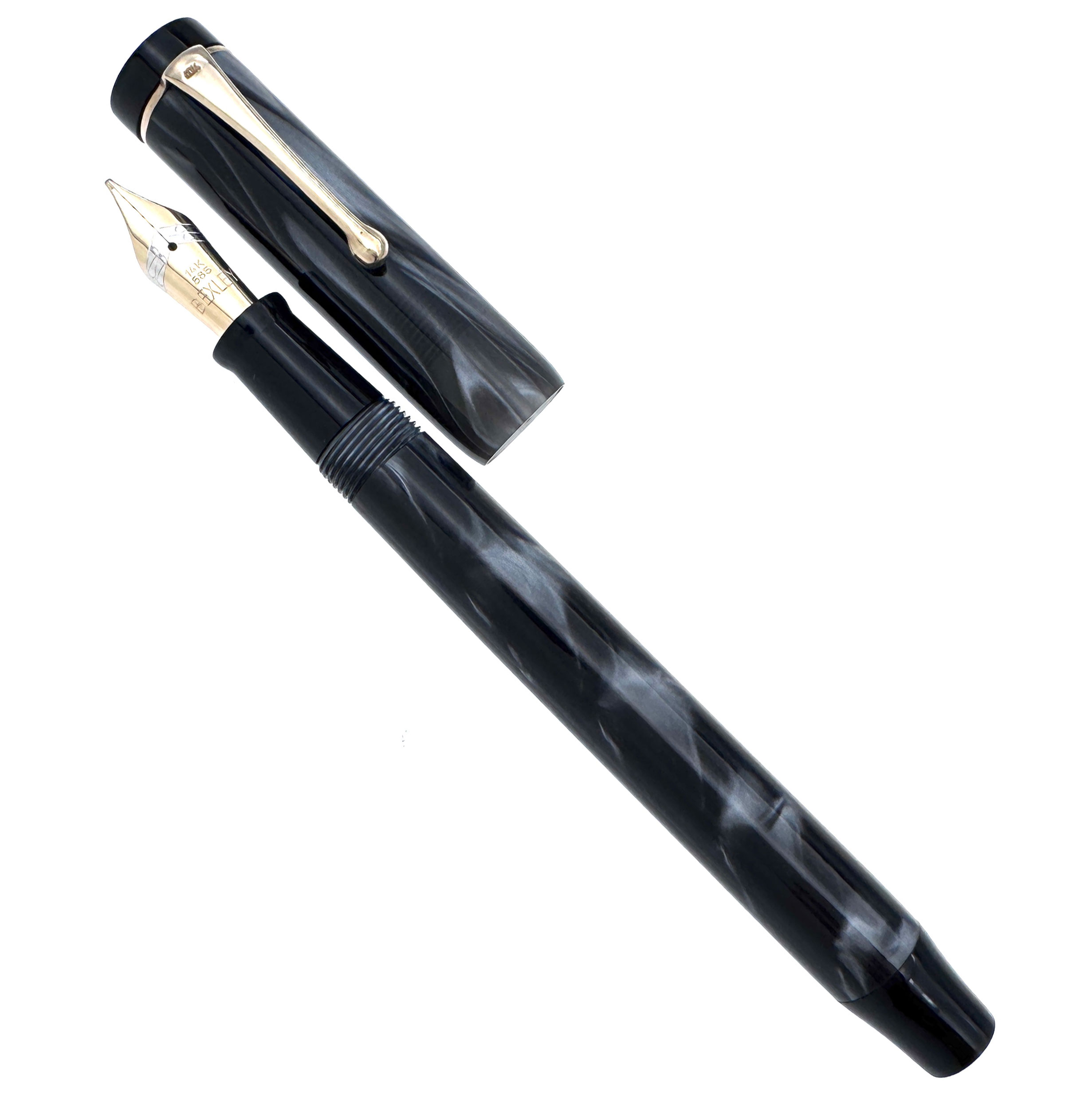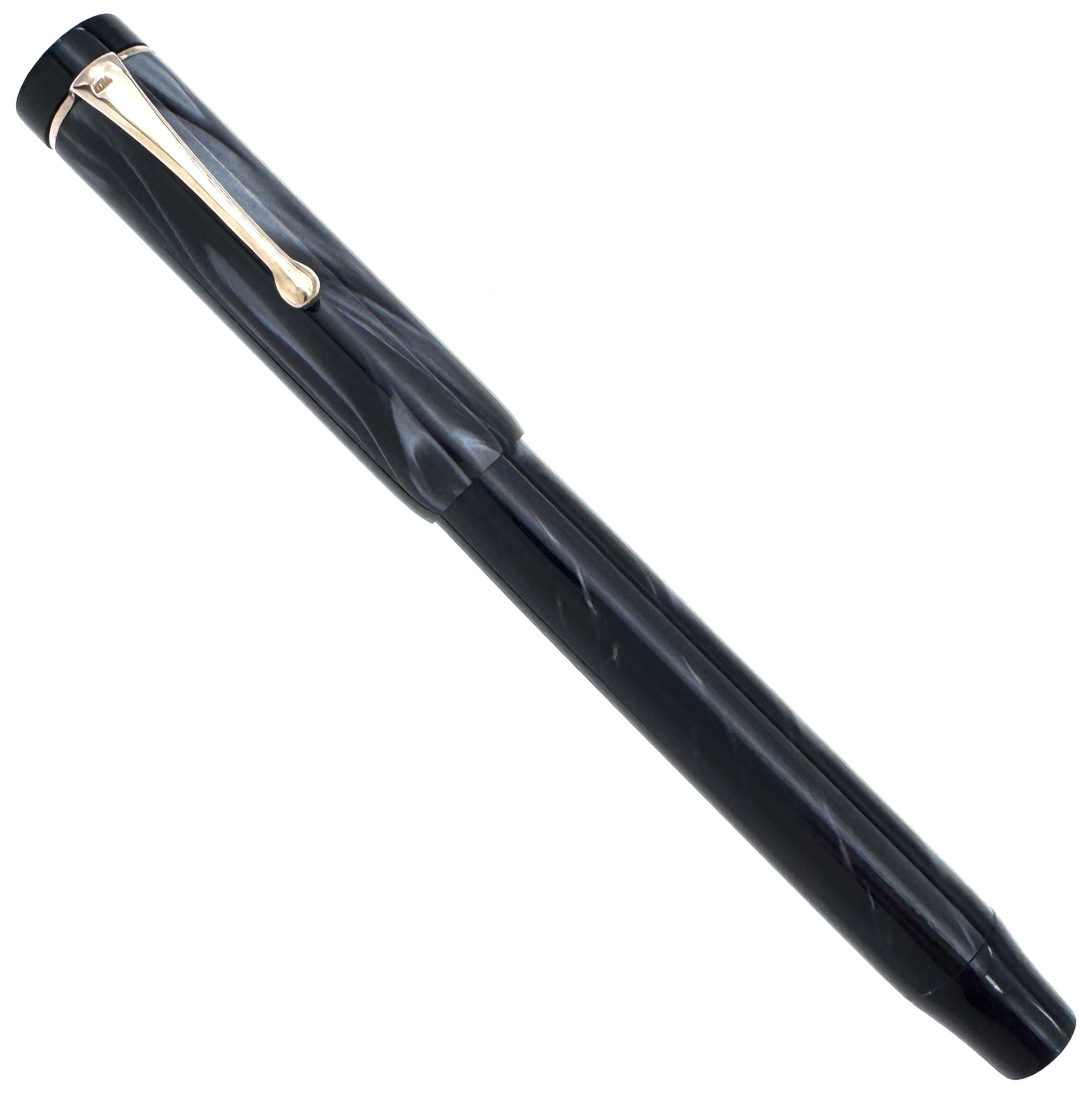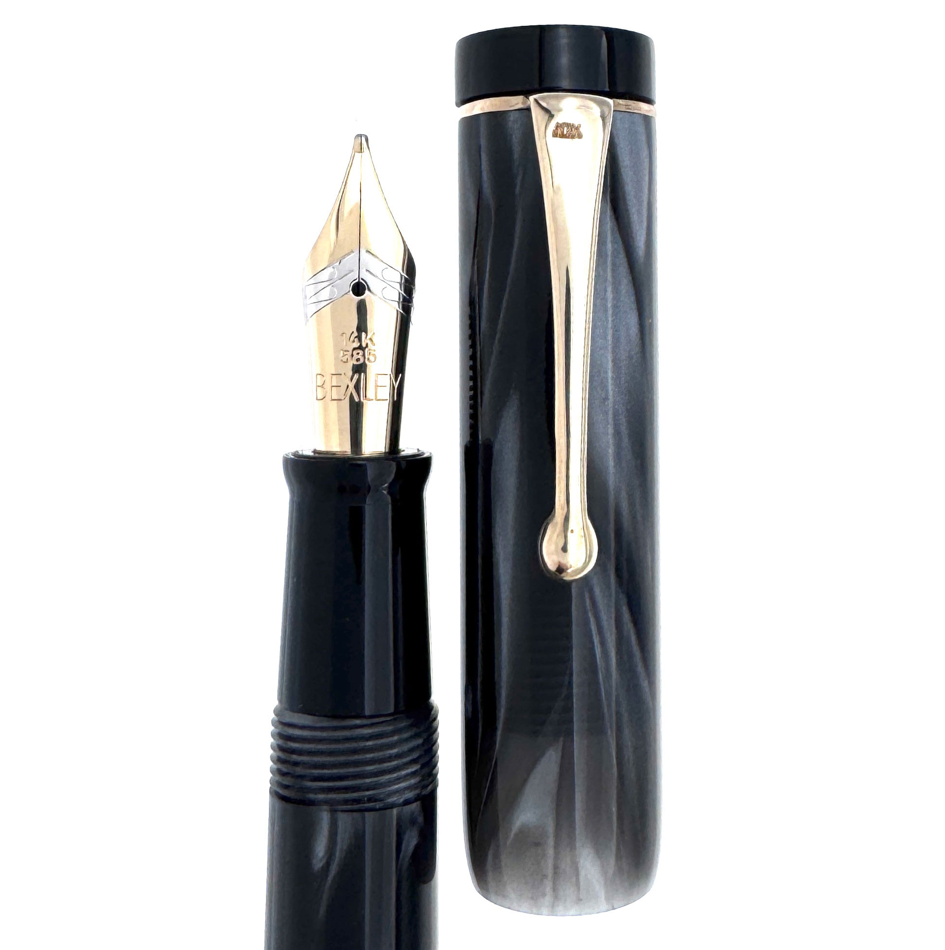 This Bexley Grey Pearl fountain pen comes without a cap band, thus “bandless,” which is the name Parker Duofold pen collectors apply to an extremely scarce Parker red hard rubber fountain pen from the early 1920’s. This kind of respectful nod towards the past was highly typical of the Bexley brand during its heyday.