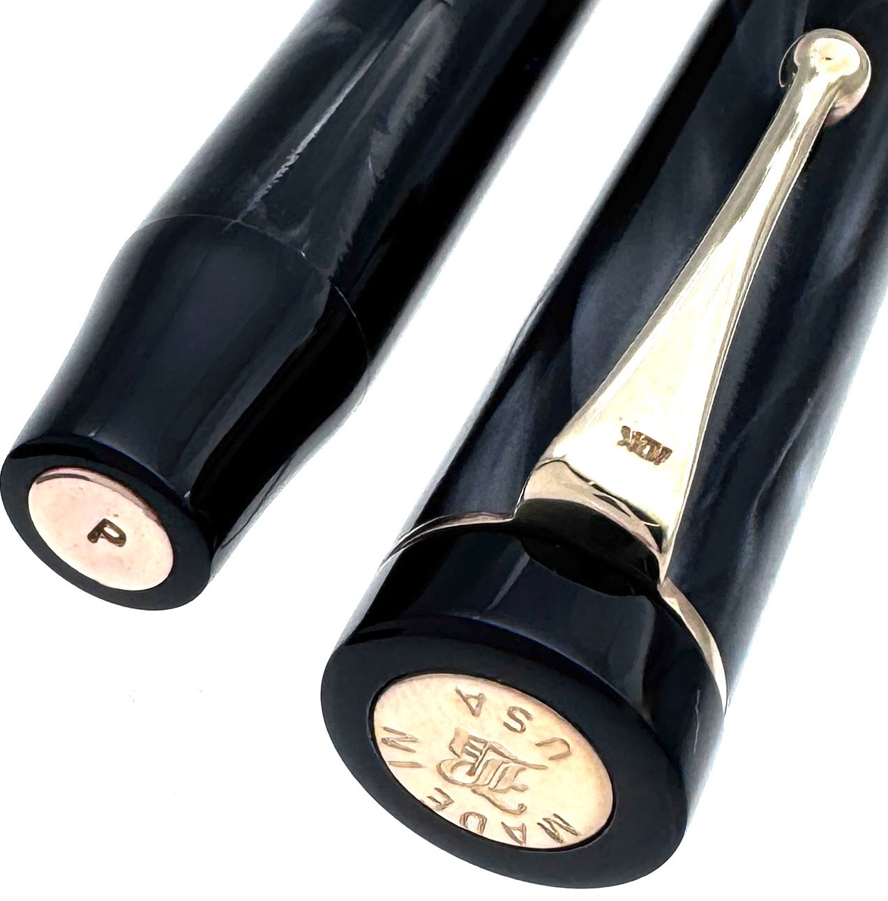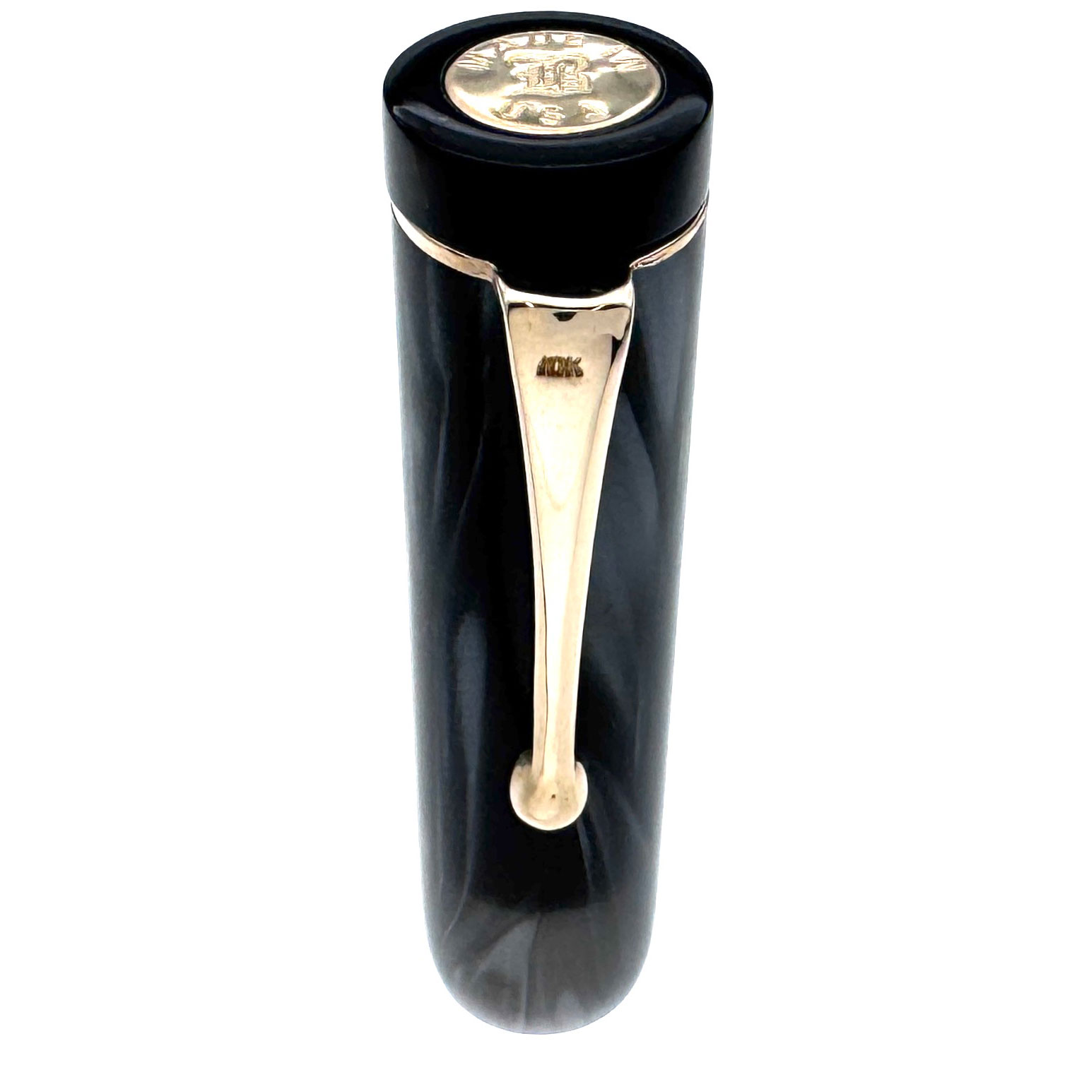 This Bexley Grey Pearl Bandless Prototype has a solid gold 10k pocket clip and an early second generation injection molded feed that Bexley founder, Howard Levy, used to accommodate an international cartridge and converter.