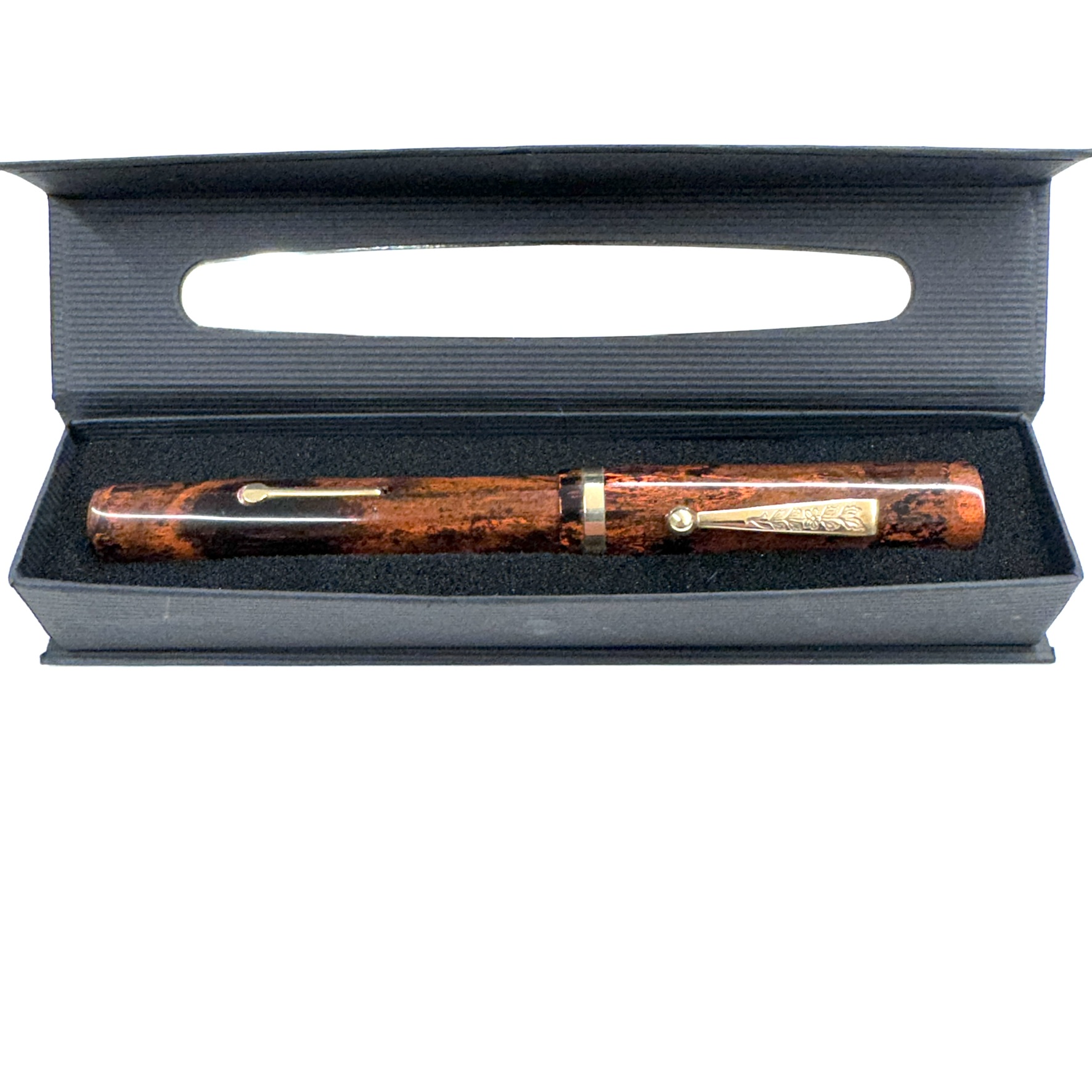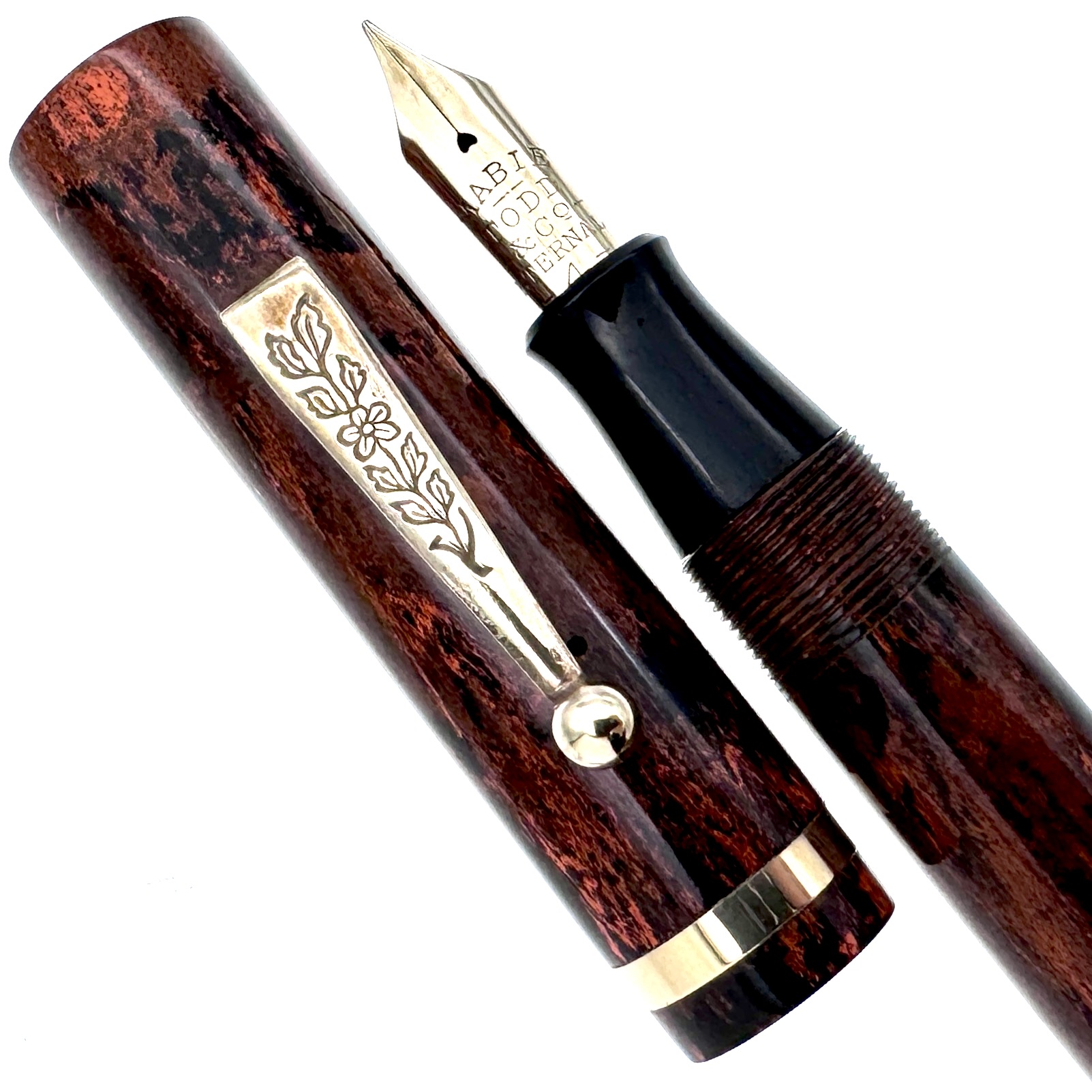 This Lincoln Oversize mottled red and black hard rubber fountain pen was manufactured by the National Pen Products Company in Chicago, Ohio although the company got its start in New York in 1896.