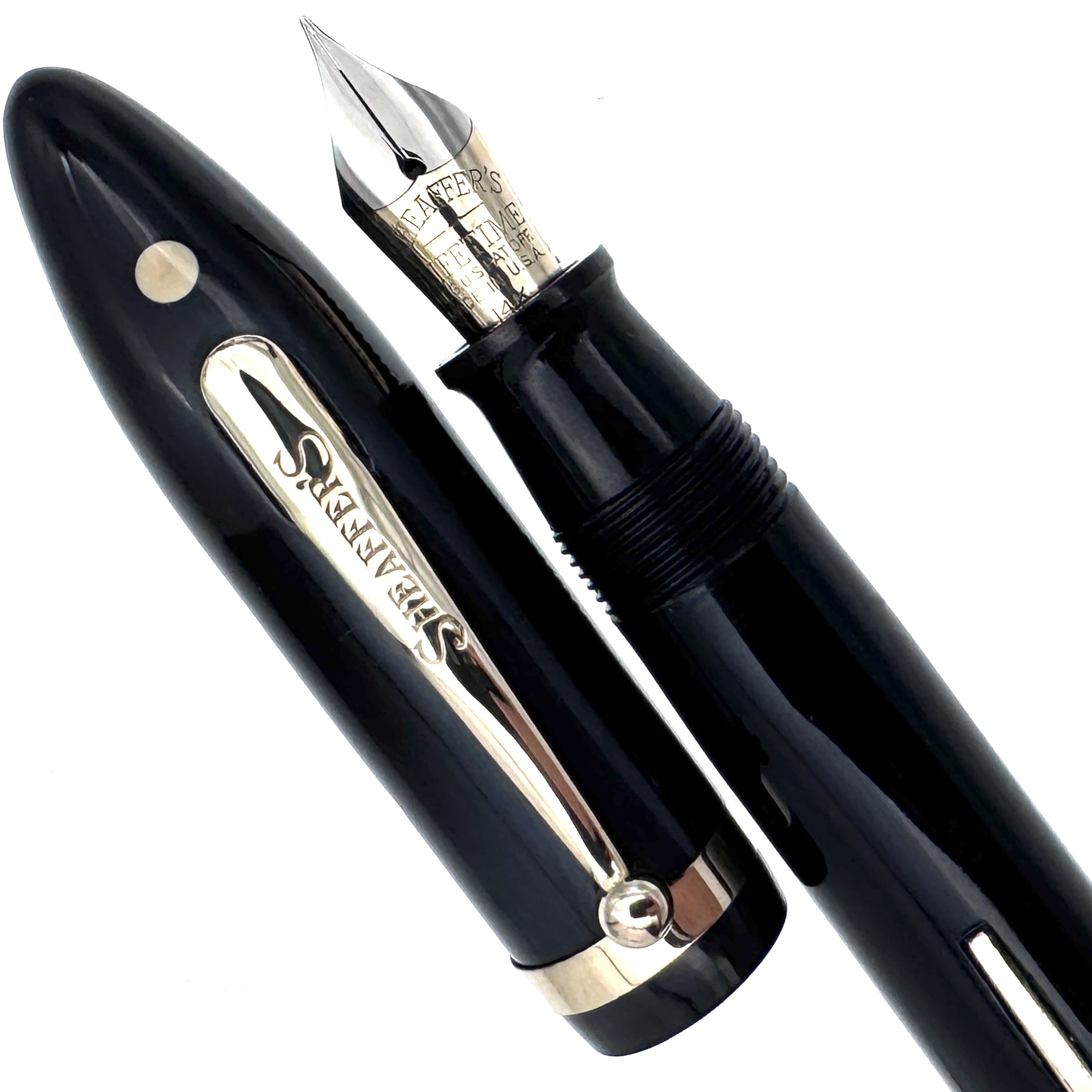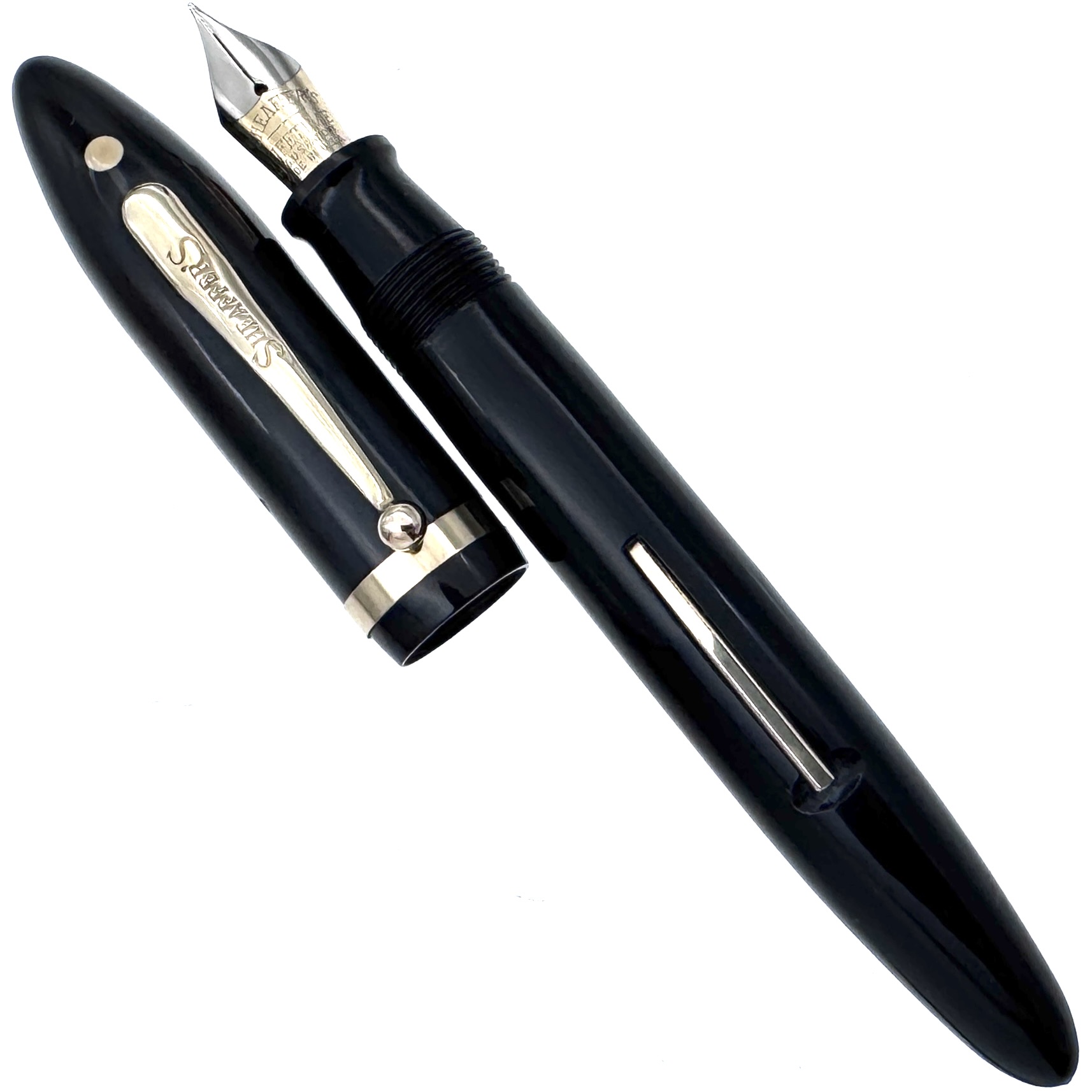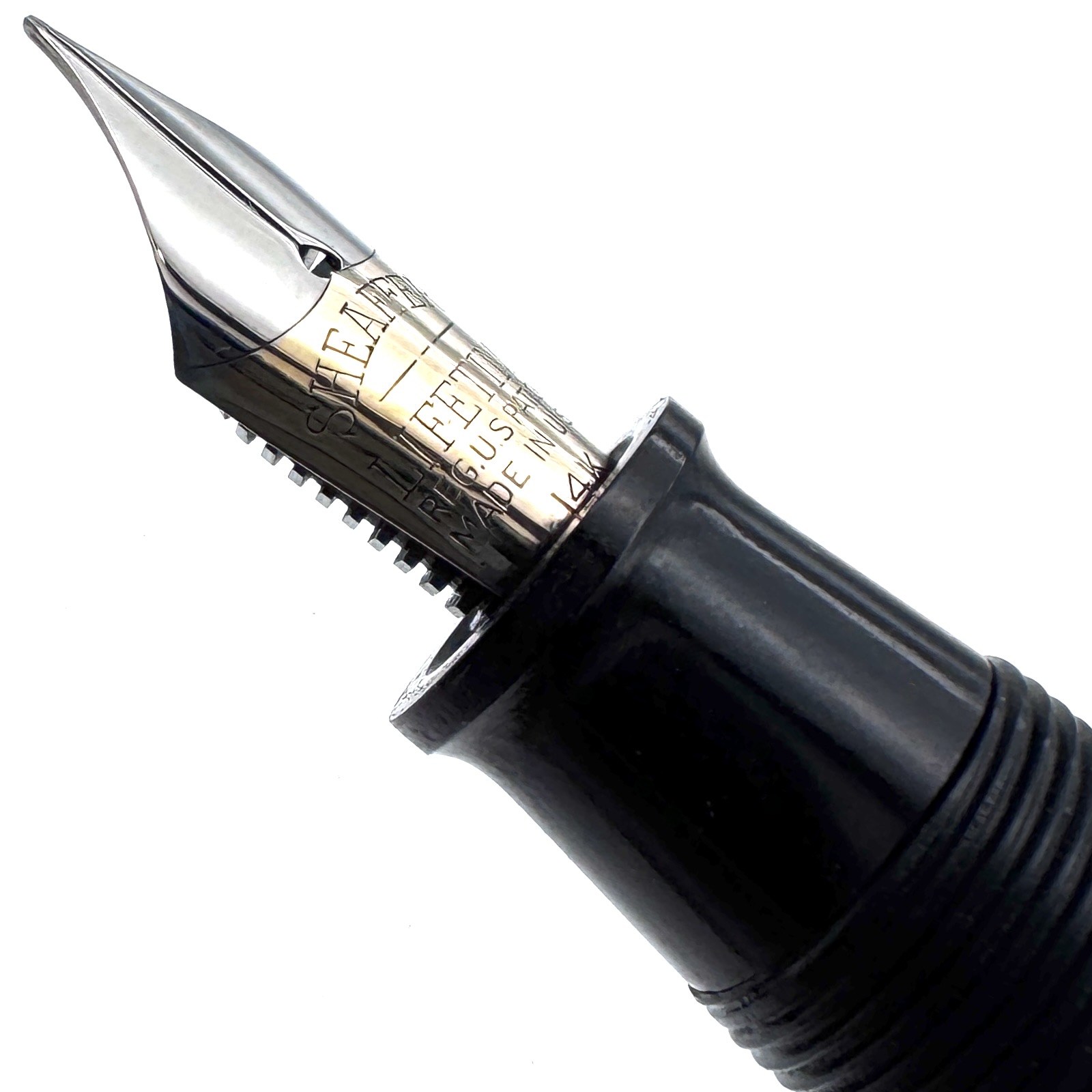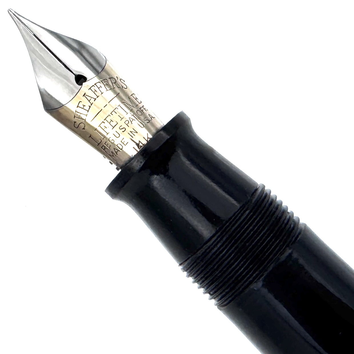 This Sheaffer’s Lifetime Full-size Balance fountain pen has no cracks or deep scratches on the body or on the beautiful two-tone Medium nib. The “humped pocket clip” puts the manufacture date between 1931 and 1933, a very challenging time for pen makers due to the advent of the Depression.